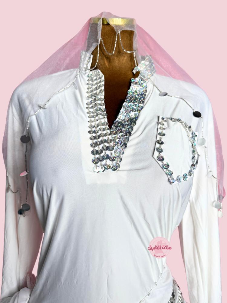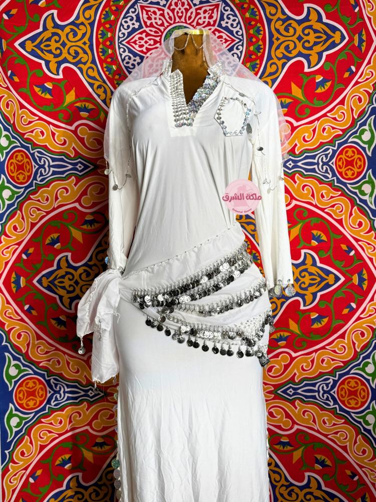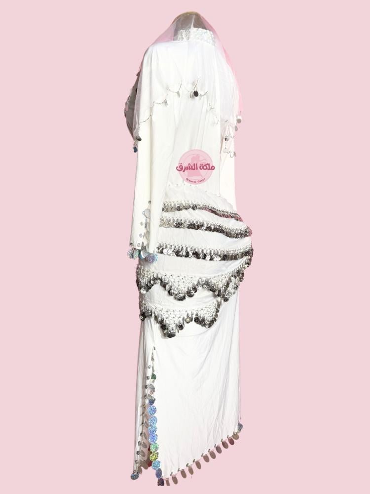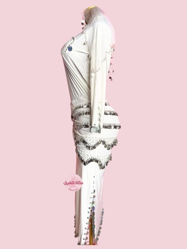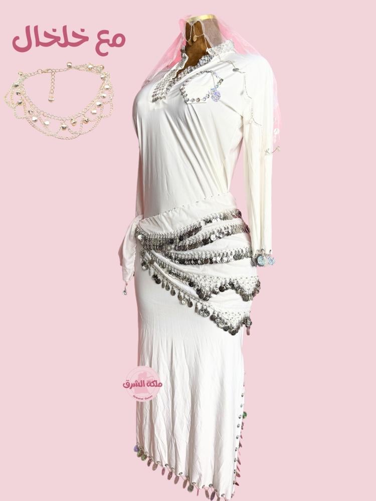 الموديل: باقة العروسة (بدلة مع حزام للخصر وطرحة للرأس وخلخال)