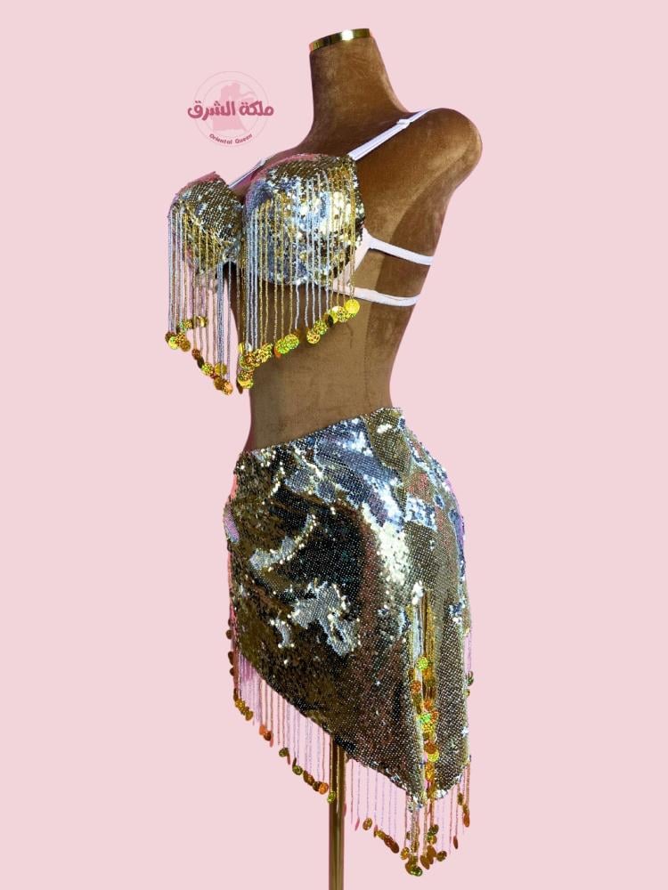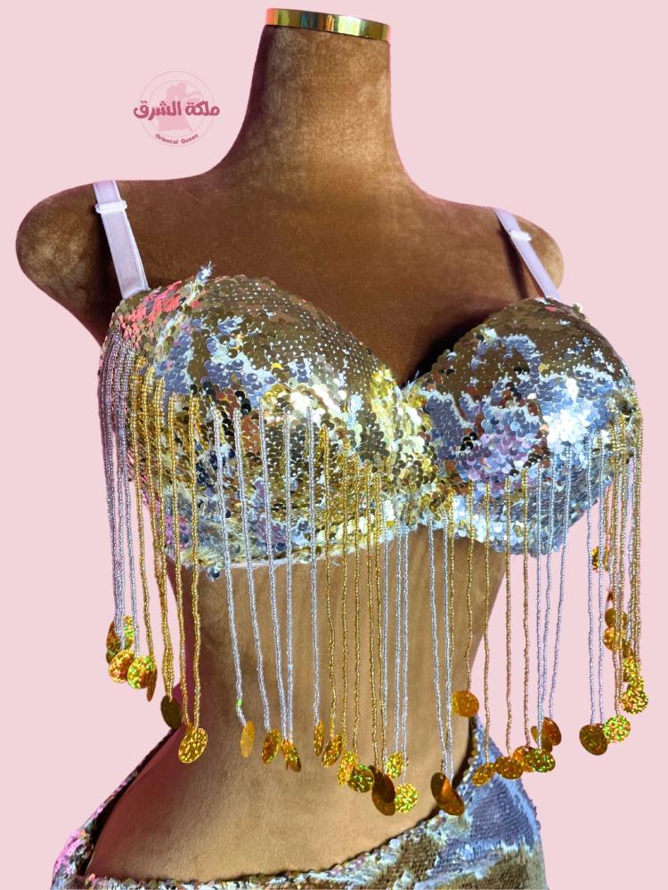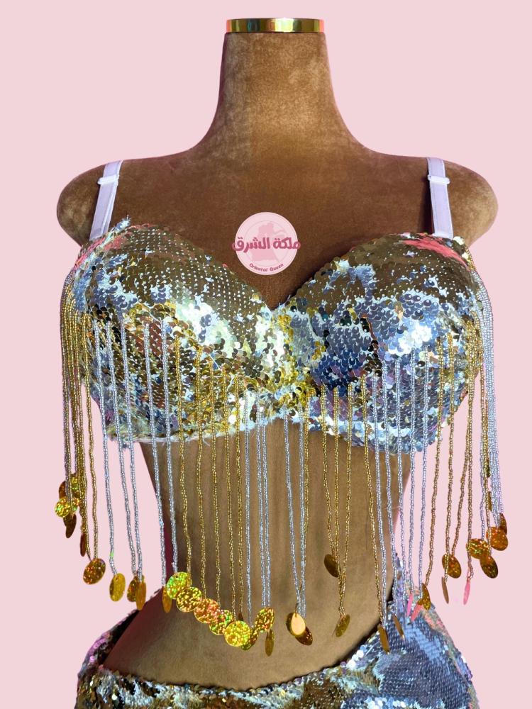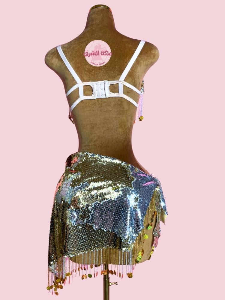 قطعة نادرة من الجمال والتميز، بدلة رقص فريدة بتطريز يدوي متقن، تم تصميمها خصيصًا على يد أفضل مصممي بدل الرقص في الشرق الأوسط. صُممت هذه البدلة لتكون أكثر من مجرد زي!