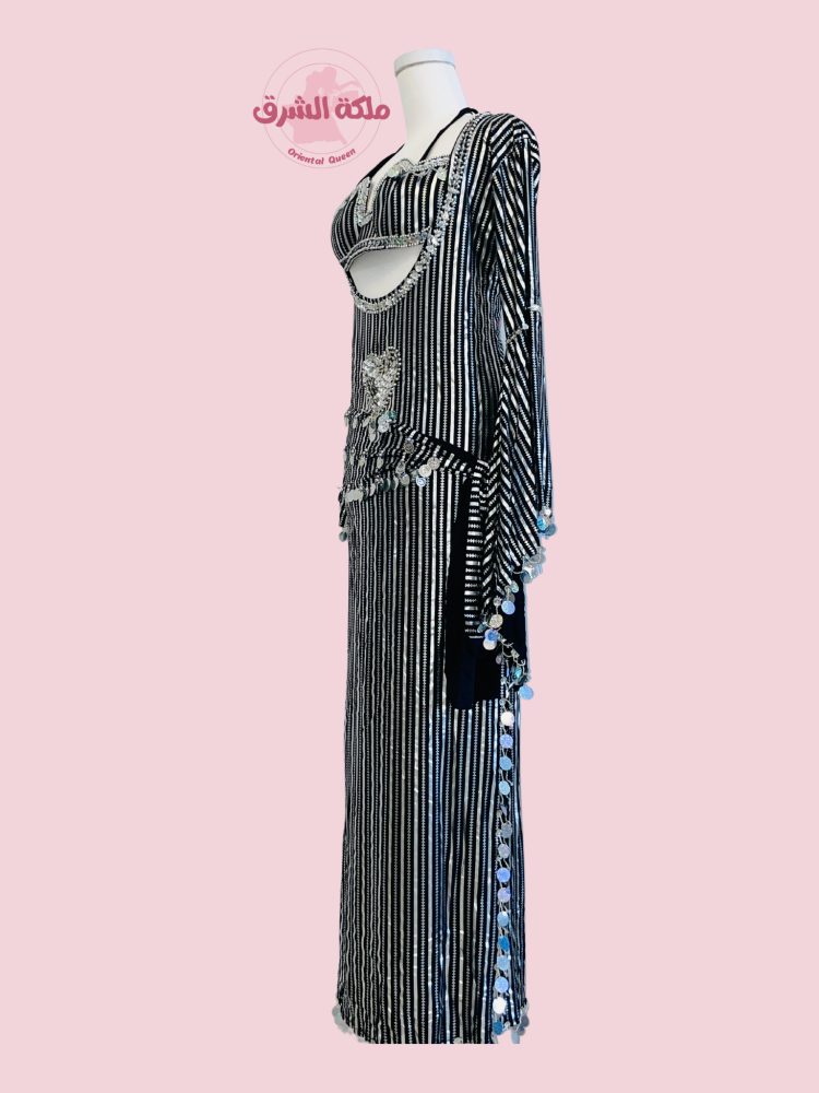 يتميز بقماش عالي الجودة وتفاصيل مذهلة تضيف لمسة من الفخامة والأناقة. ستشعرين بالثقة والجاذبية مع كل حركة تقومين بها بهذا الفستان الذي يجمع بين الأصالة والحداثة. استعدي لأمسيات الرقص الشرقي بأناقة لا مثيل لها مع هذا الفستان الرائع الذي سيجعلكِ نجمة لامعة في أي مناسبة!