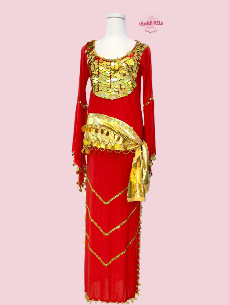 بدلة رقص ملكة الدناديش (أحمر) (حزام مجاناً)